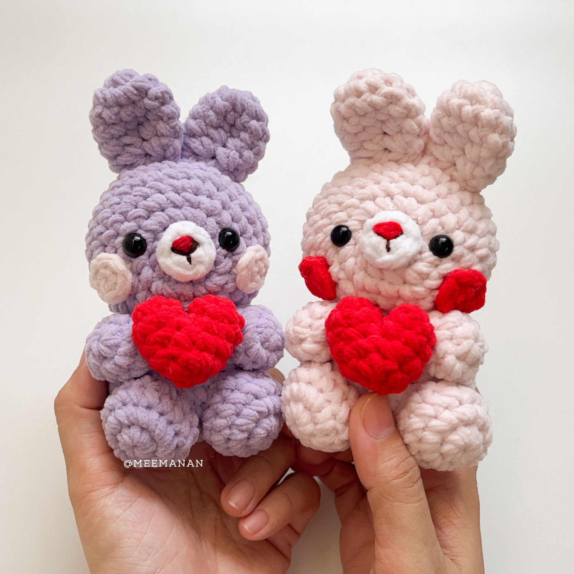 Crochet your own adorable Bunny Love with this easy amigurumi pattern PDF. Clear step-by-step instructions in US terms and a free YouTube video tutorial to guide you. Make it as a cute keychain or a full bunny doll. Instant digital download.