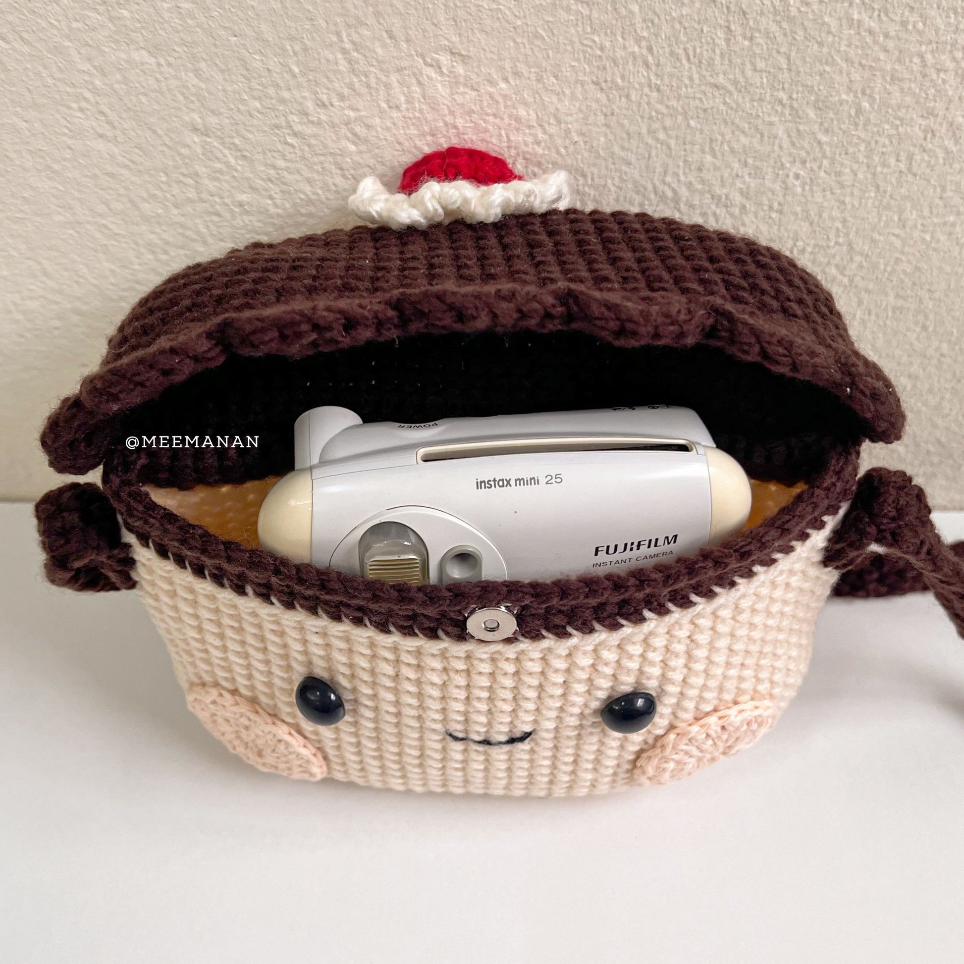🍮 Pudding crochet bag designed as a kawaii handmade crossbody purse. It works as a small Instax Mini case or everyday shoulder bag. Ready to ship and ideal for girls, teens, and anyone who loves cute crochet accessories.